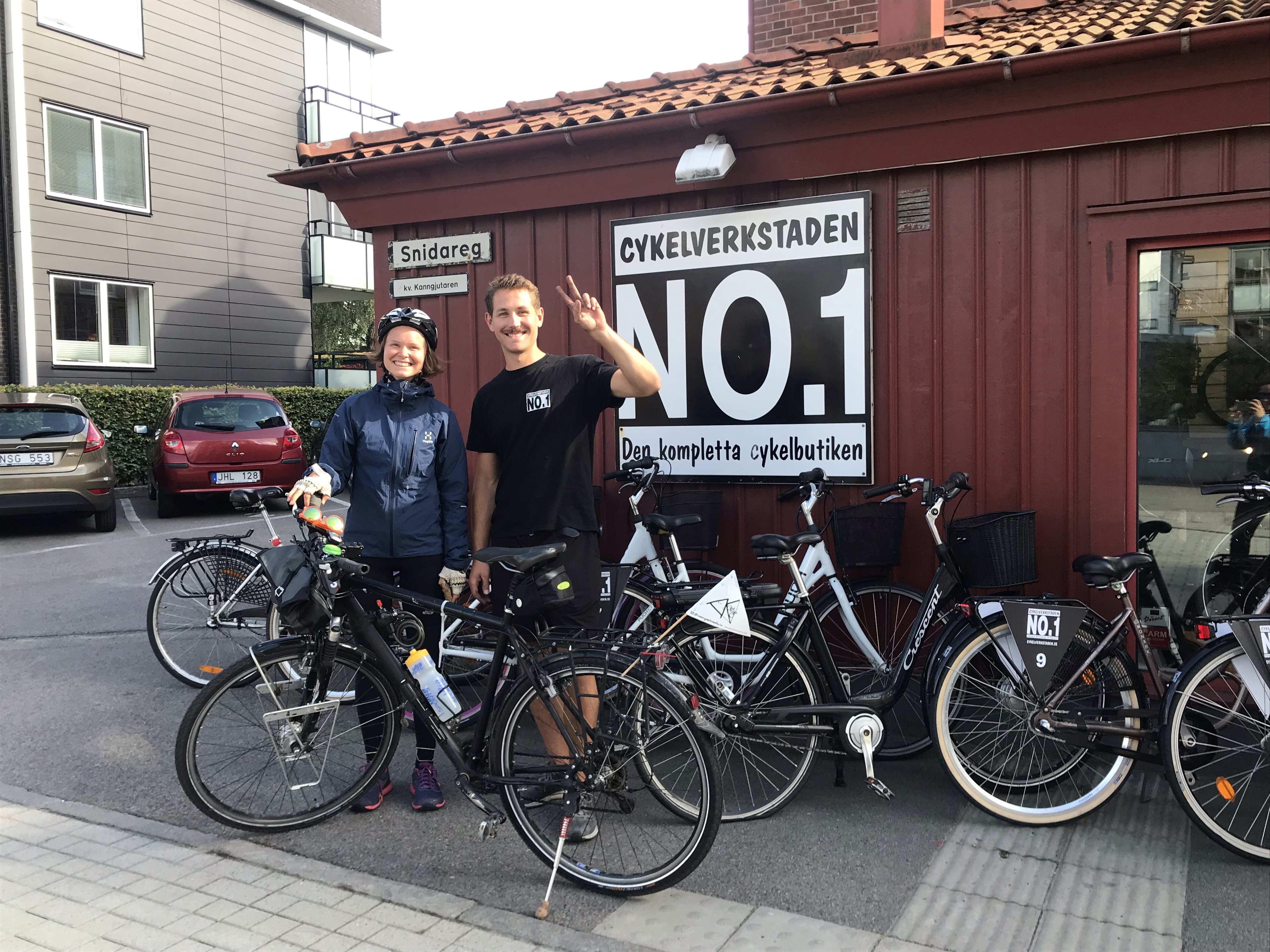 So überlegen wir hin und her und entscheiden uns dann für den Weg zur Fahrradwerkstatt. In der Cykelsverstanden No. 1 kann uns unser Held des Tages „Teu“ dann schnell weiterhelfen. Zuerst ist nicht sicher, ob er es noch am selben Tag fixen kann. Als er dann aber schließlich lange wegbleibt, vermuten wir schon Gutes. „I found your Instagram“ erklärt er dann. Der Wimpel, den mein Bruder mir zur Abfahrt gemacht hat, hat gezogen. Ich bin so erleichtert und dankbar, dass Teu den gerissenen Bowdenzug noch am selben Tag reparieren kann. Also definitiv der Held des Tages! Wenn euch mal das Fahrrad in Varberg kaputt geht, dann ab zur Cykelsverkstaden No.1.